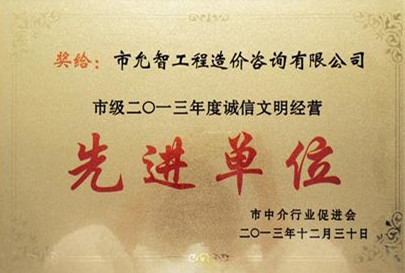 誠信經(jīng)營示范單位證書