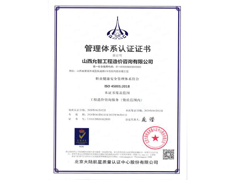 管理體系認(rèn)證證書1